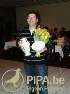 11省:亚力帝克特拉(Arie Dijkstra)是本区赛事的最大赢家,在这场波玛罗(Pommeroeul)举办的17536羽赛中中,这位来自奥特伍德(Oudwoude)的赛手获得冠亚军,50羽参赛37羽入赏。来自克勒姆(Kollum)的P.斯梅丁(P.Smeding)以一羽一岁龄鸽获得第3名,这羽赛鸽在今年已经为主人赢得了3次俱乐部赛事的冠军。来自名手波斯马(Bosma)的鸽子获得第4,5名,48羽参赛43羽入赏,如此高的入赏率,也就不难解释,舍内50%的种鸽来自波斯马的帝克特拉(Arie Dijkstra)为什么能有如此骄人的战绩!