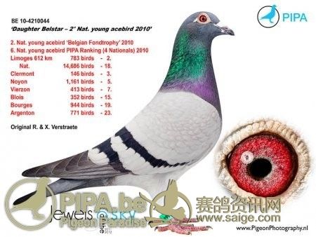 佛斯特拉父子接受倚天精通颁发的2011 Criterium der Azen冠军奖杯,由诺曼夫人(Mrs Norman)颁奖要描述佛斯特拉父子并不困难,他们是真正的赛鸽实战高手。他们信服使用优秀X优秀的方法配对作育,更喜欢超级鸽X超级鸽。他们作育的所有幼鸽不论血统毫无例外地都要全程参赛来进行检验,首先从幼鸽起就要参加省赛和国家赛。表现优秀的雄鸽可能在第3场国家赛(拉索特年)之后由父亲劳尔(Raoul)留在家中。但多数的幼雄鸽都要参加全部的4场幼鸽国家赛,雌鸽同样如此。但是不同的是雄鸽通常可以在