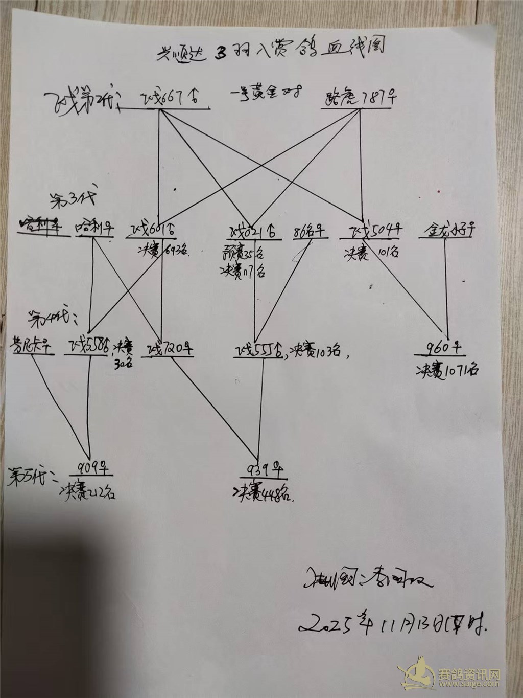 其中:212名和448名,是老飞戈的第五代鸽,1071名是老飞戈的第四代。