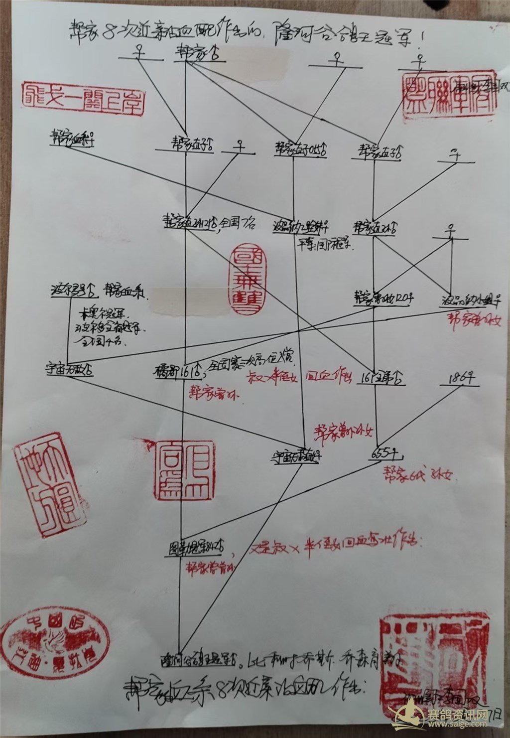 鸽王冠军的曾祖父是121雄,帮家的直孙,利蒙治全国第7位;