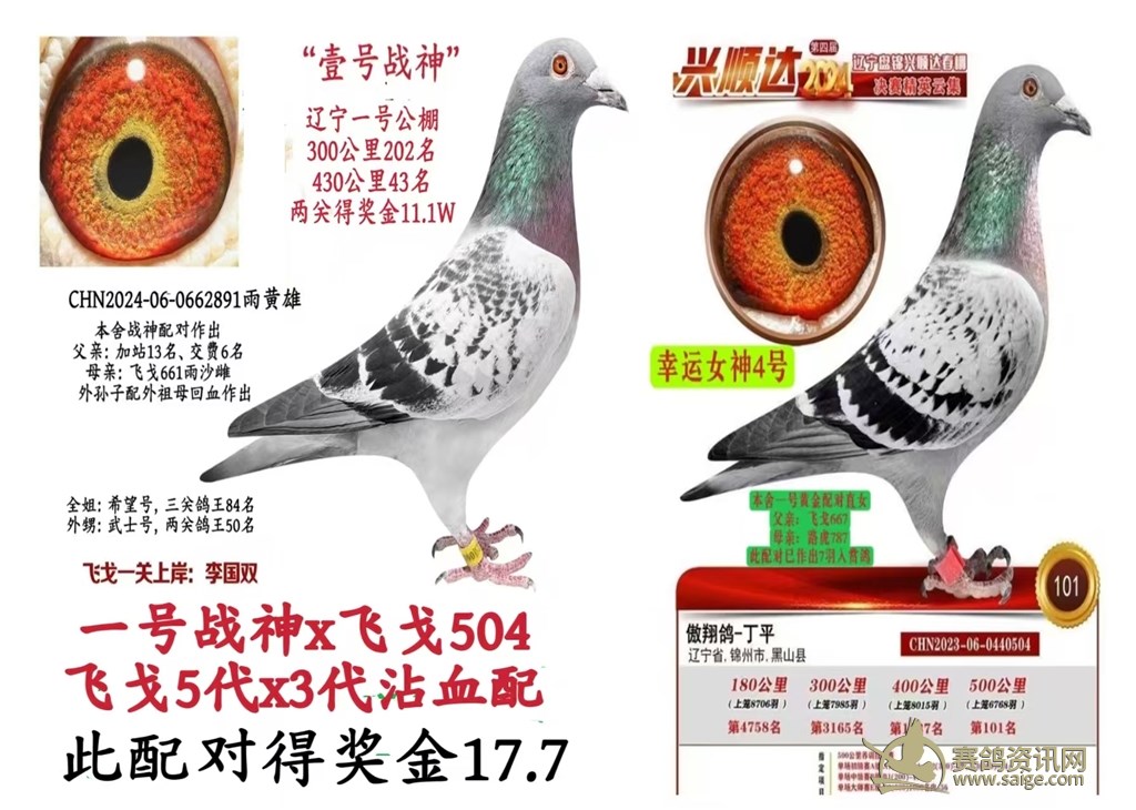 一号战神+飞戈504,外孙子x姑奶奶,飞戈5代x3代,沾血配,哥哥的外孙子配妹妹,应该属于近亲复壮育赛的组合。