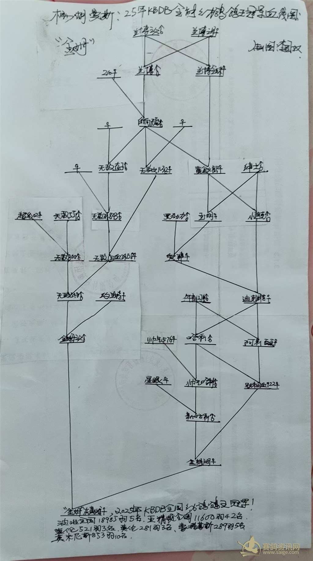 25年KBDB全国全能幼鸽王冠军--“金姆”血线图。
