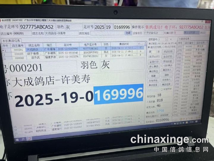 广东永环宇赛鸽公棚家飞扫描公告