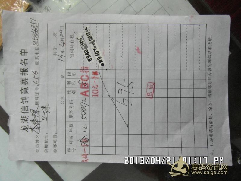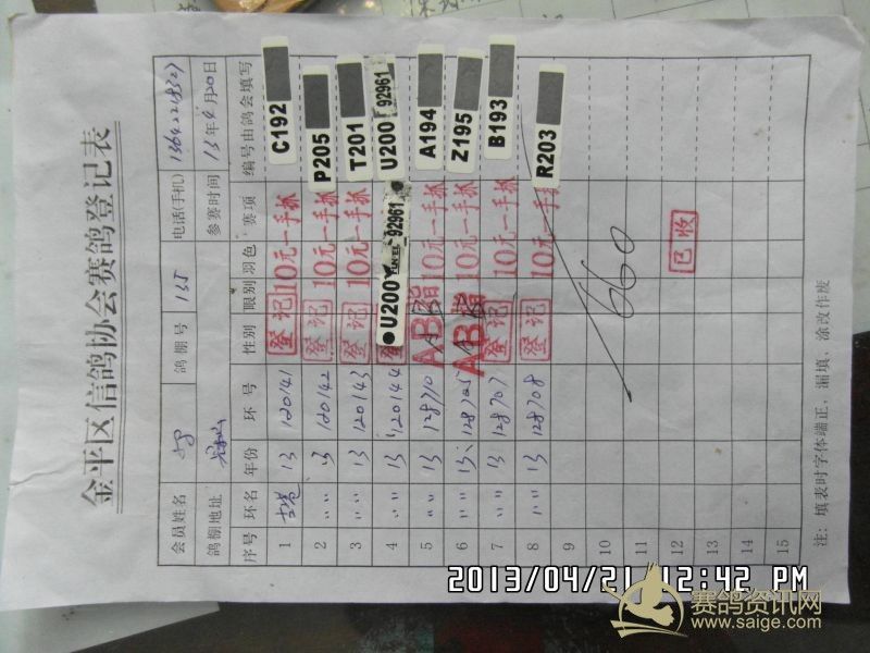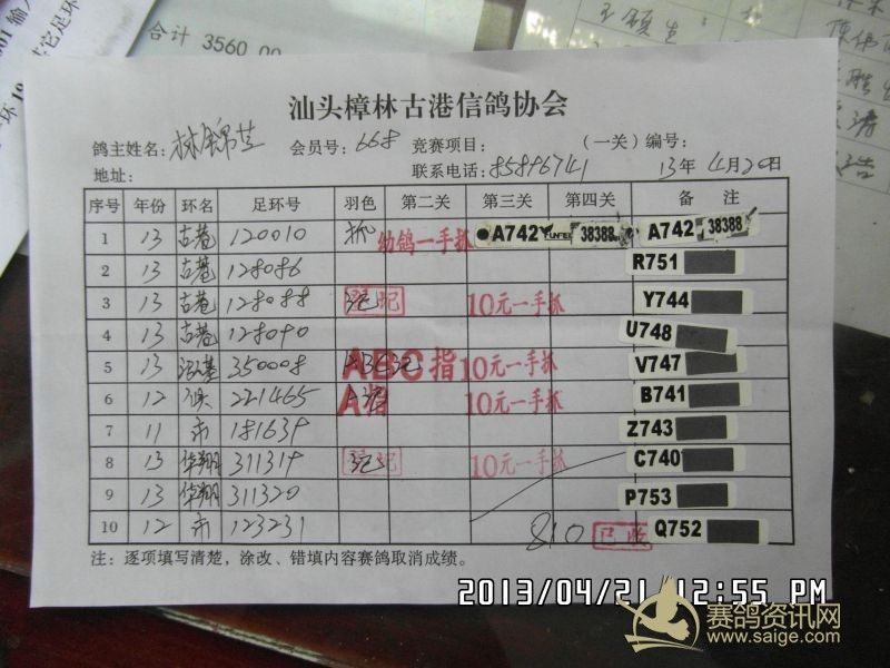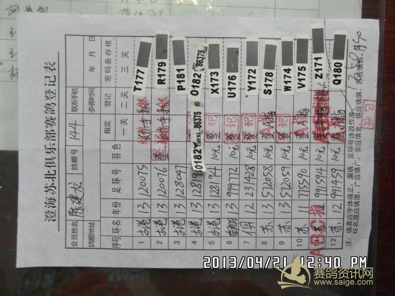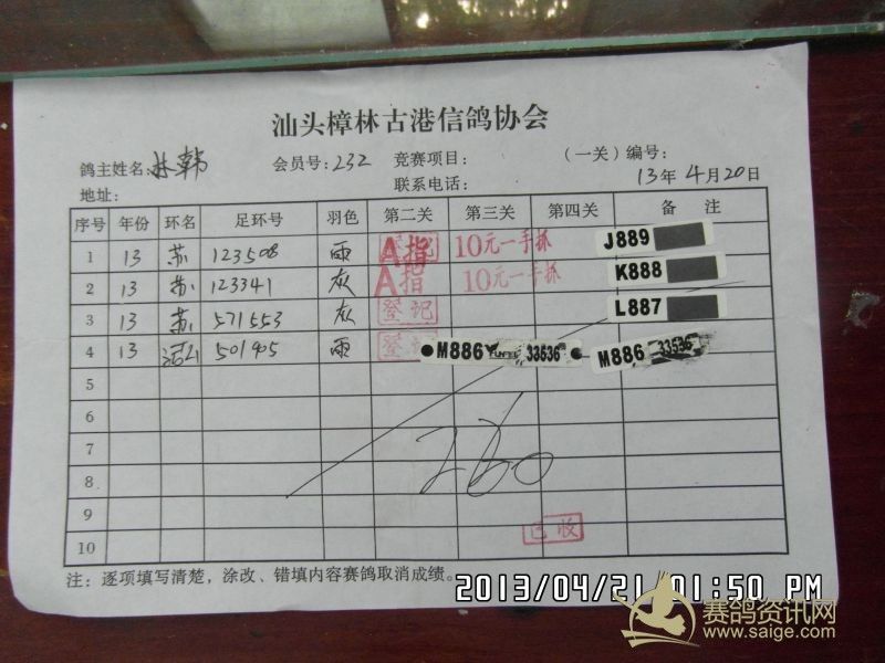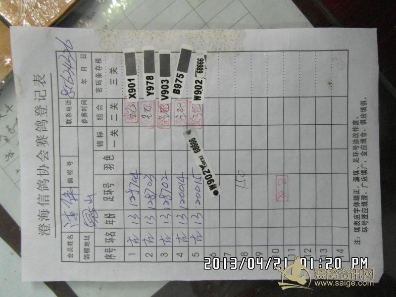 樟林古港信鸽协会2013年春季莆田站精英幼鸽赛,常规赛前三名验鸽图片