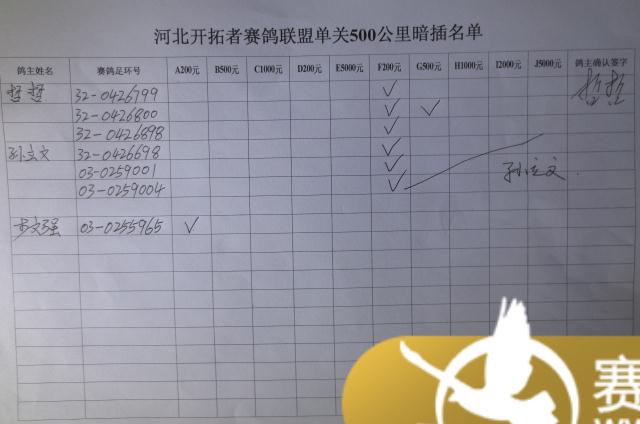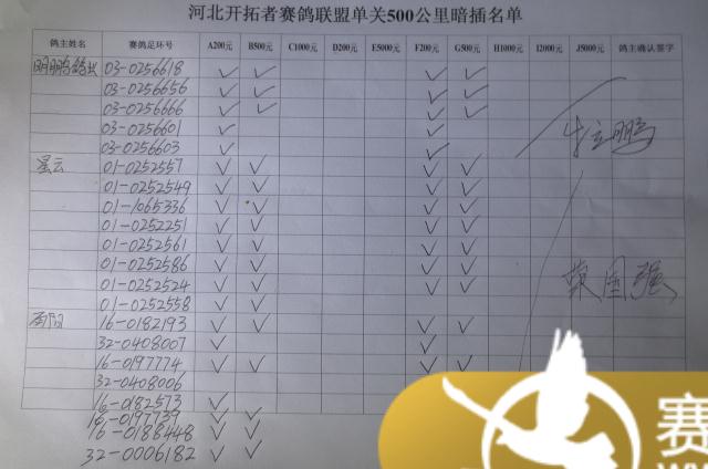 河北开拓者赛鸽联盟单关500公里暗插名单