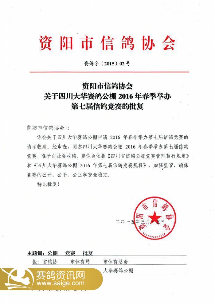 资阳市信鸽协会批文