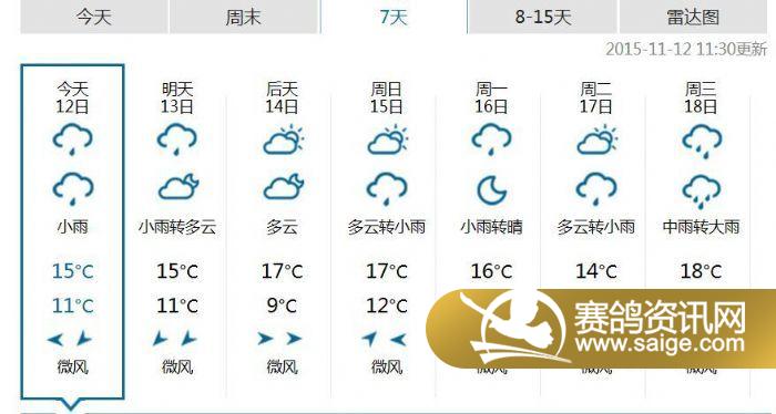 尊敬的鸽友,为了能更好的对爱鸽进行训赛,随时掌握天气情况做好防护工作,翔盛公棚特做未来一周的天气预报供鸽友参考.