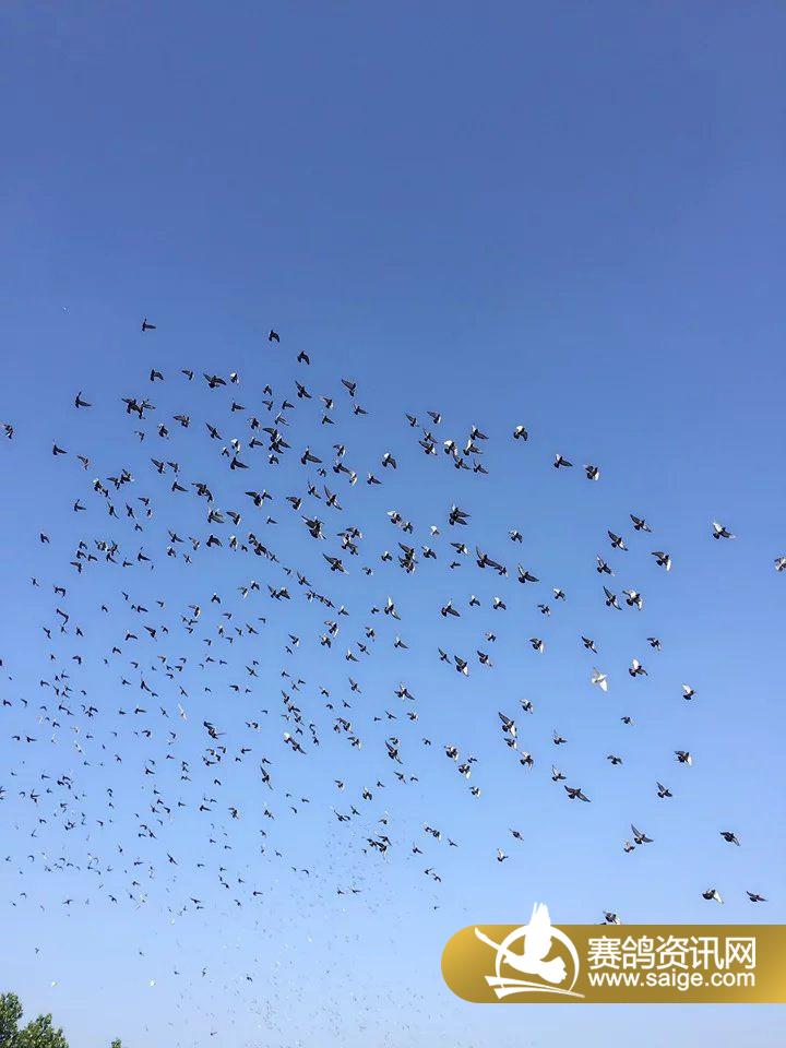 晴空万里,开家的幼鸽自由翱翔天际。振翅挥舞,伴随着伙伴们无所畏惧。驰骋天空。在翔盛上空形成一条最美的风景线。