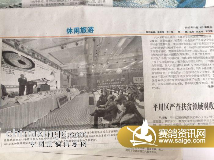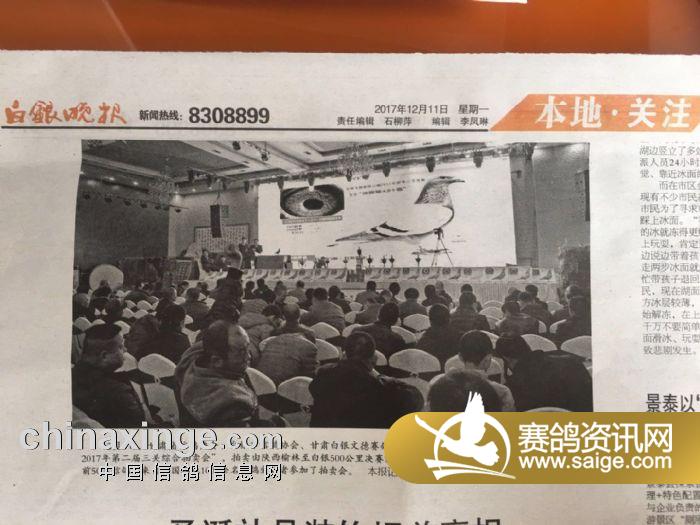 甘肃白银文德赛鸽公棚2017年拍卖大会西农之光鸽药叁万余元