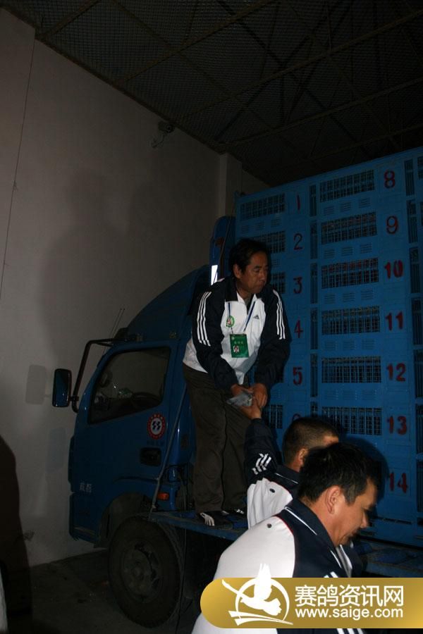 继2010年11月5日预赛因司放地及沿途大雾延期,国奥(国际)赛鸽中心于今日19:10分开始集鸽上笼。重庆市信鸽协会副主席陈影全以及重庆市江北区信鸽协会副主席、裁判长苏德元等任比赛监督。