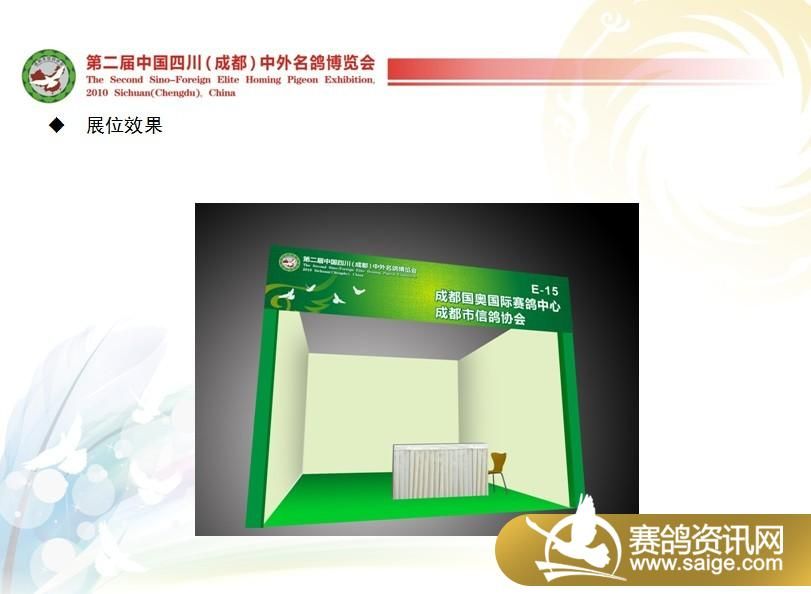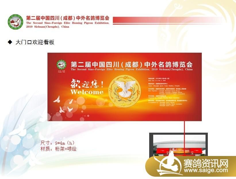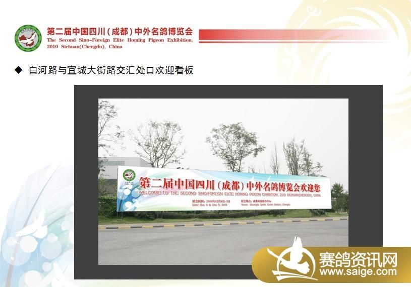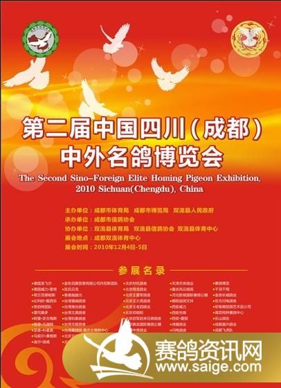 第二届中国四川(成都)中外名鸽博览会将于2010年12月4日在成都双流体育中心举行。