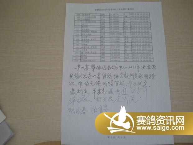 翠枫园决赛随车监放的鸽友名单