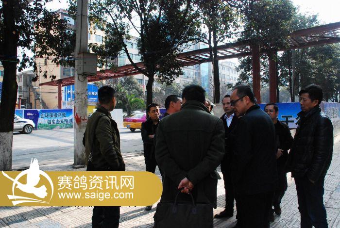 图为贵州益华地产董事长、翠枫园董事长姜军(右四)向副市长宋显胤(右二)一行汇报人行天桥建设情况