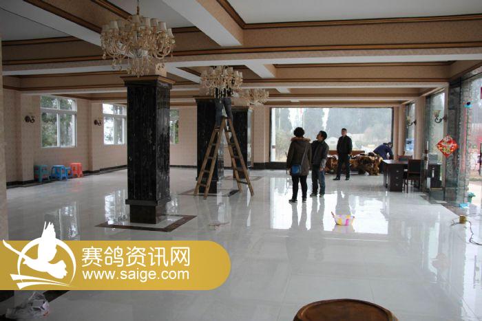图为观赛大厅装修工程已进入尾声