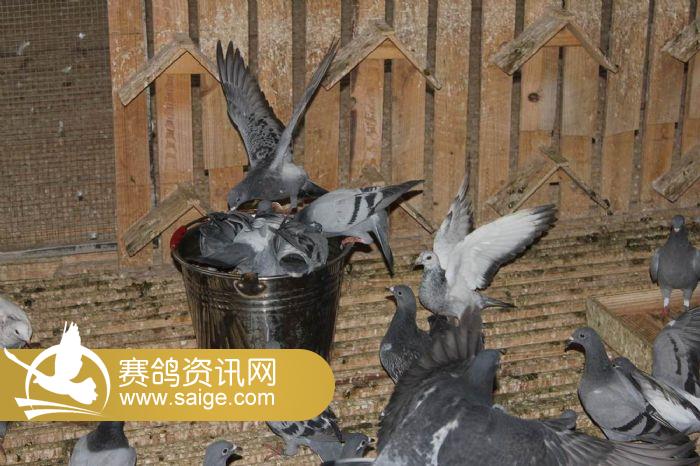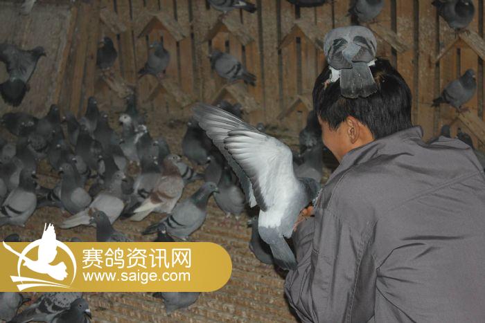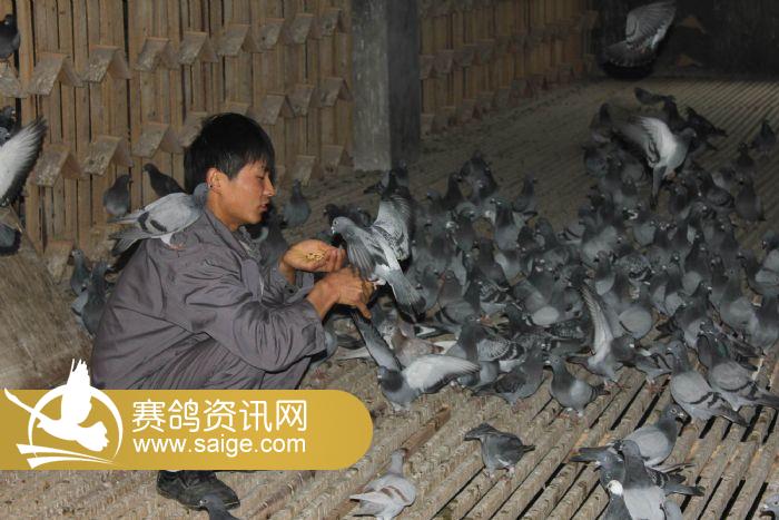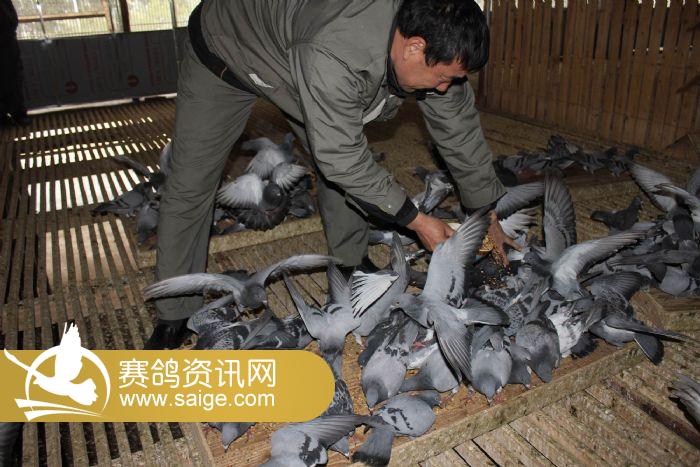 在养育员的精心喂养下,赛鸽健康成长着