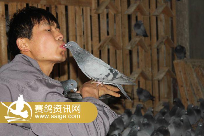 人与赛鸽亲密无间