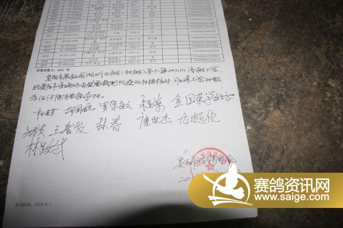 翠枫园2015年清棚前20公里集鸽清单(按姓氏排序)