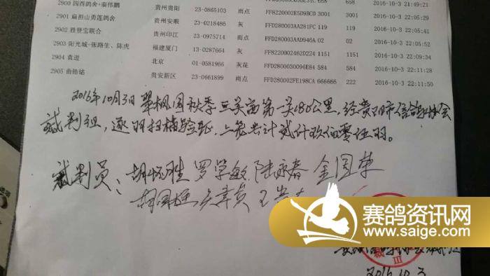 翠枫园2016年秋季三关赛第一关180公里集鸽清单