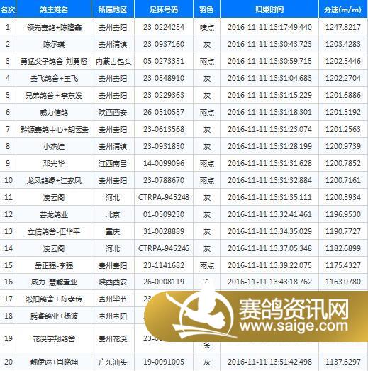 11月11日,贵州翠枫园赛鸽中心2016年三关大决赛打响!上午07:28,979羽信鸽在广西武鸣开笼放飞,空距437公里,司放地天气为多云。来自贵州9个地州市鸽会裁判及鸽友代表参加监放。