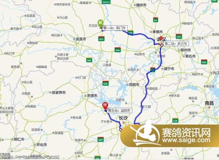 翠枫园接鸽路线:荆门--武汉--萍乡--湘潭--益阳