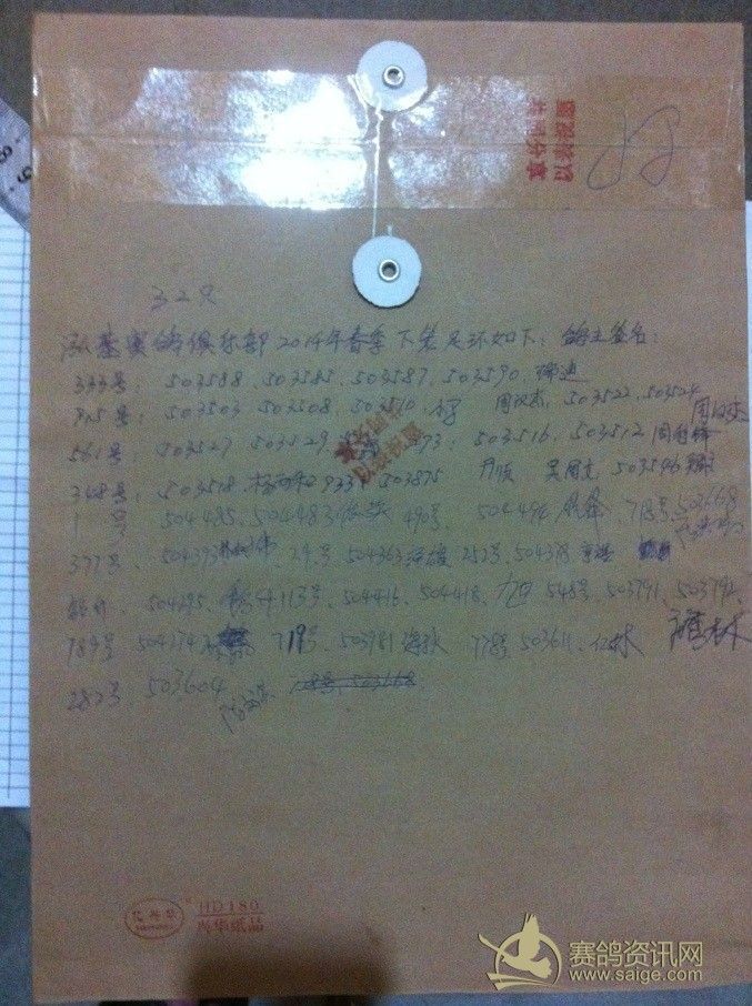 泓基赛鸽俱乐部2014年春季有资格分奖金足环校对