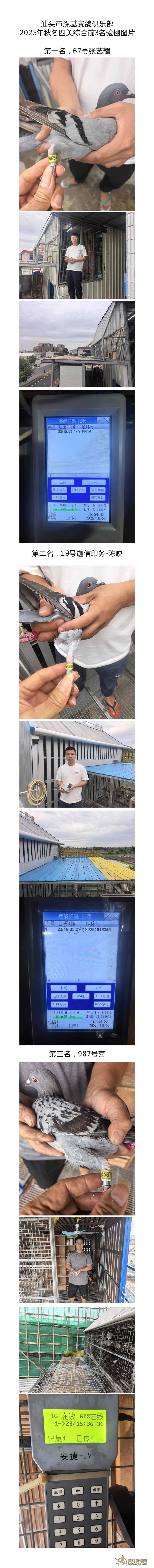 汕头市泓基赛鸽俱乐部 2025年秋冬四关综合赛前3名验棚图片