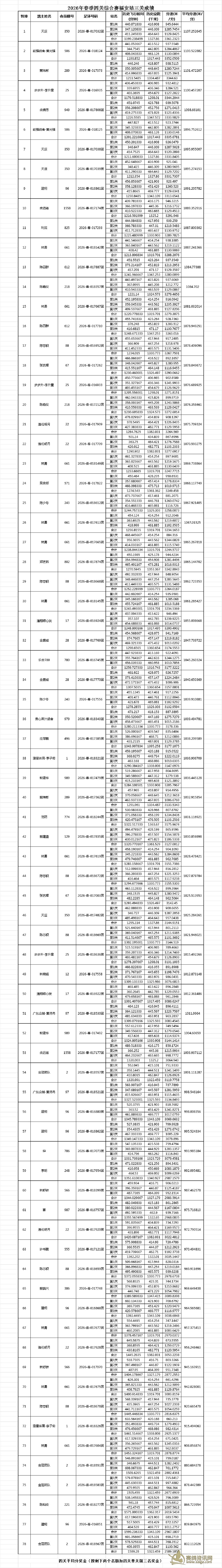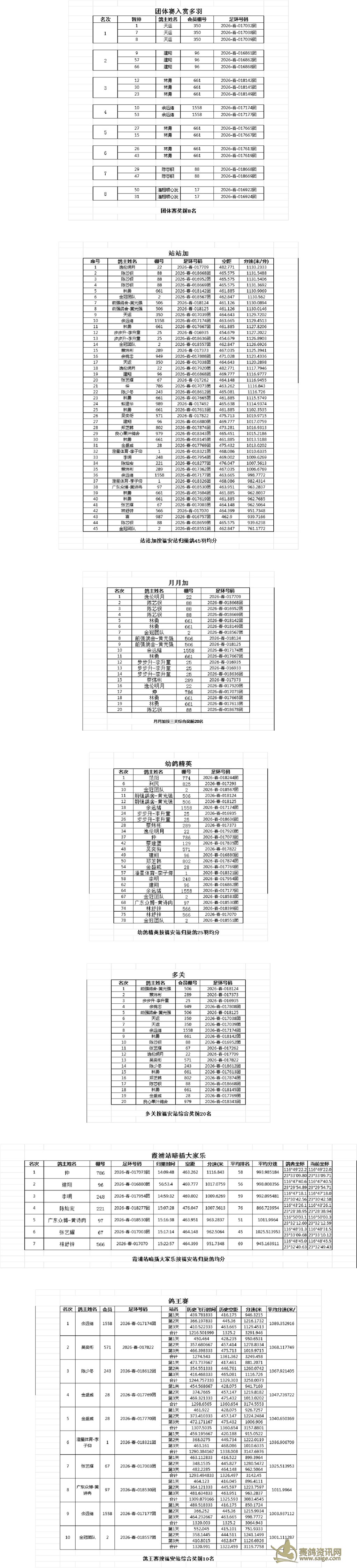 汕头市泓基赛鸽俱乐部 2026年春季四关综合赛前10名验鸽图片