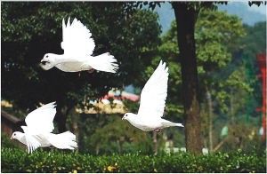这时,有个同事开玩笑说,今天中午炖鸽子汤吃吧;我连忙说绝对不能,这是一只英雄的鸽子,它参加和见证了香港回归那庄严而神圣的场景,它的主人见到它胜利归来,一定很高兴,一定会为它骄傲的,我们应该加以保护。香港到盐城,远隔千山万水,几千里路程,从香港回归现场飞回到盐城,多么了不起!有人建议,与盐城信鸽协会联系,看怎么处理。我连忙通过114查询到信鸽协会的电话,告诉他们这只香港回归信鸽的情况,信鸽协会的同志告诉我,参与香港回归放飞信鸽是经过严格挑选的,信鸽的识别能力极强,身上有特殊功能的器官,作为识别方向的“仪器”,你将信鸽放到窗外,相信它会有这个能力找到它的主人和家的。我将信鸽放到外窗台上,鸽子在窗台上来回走了几步,然后展开翅膀飞向了蓝蓝的天空,不一会儿便从我们的视线中消失了。