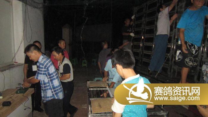2015年8月14日重庆大联盟赛鸽公棚第六届秋季清棚30公里训放在重庆市信鸽协会裁判组全程监督逐羽进行扫描,总清棚羽数为6824羽。