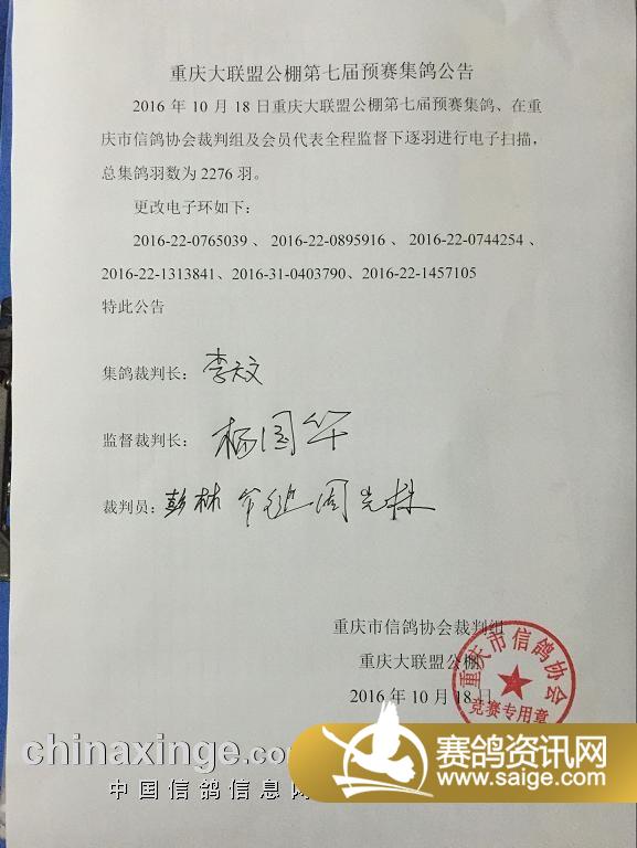 市鸽协裁判,与现场鸽友签字