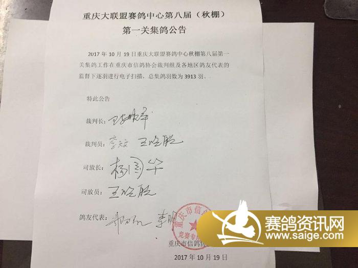 重庆大联盟赛鸽中心2017年秋第一关指定名单(每日更新)