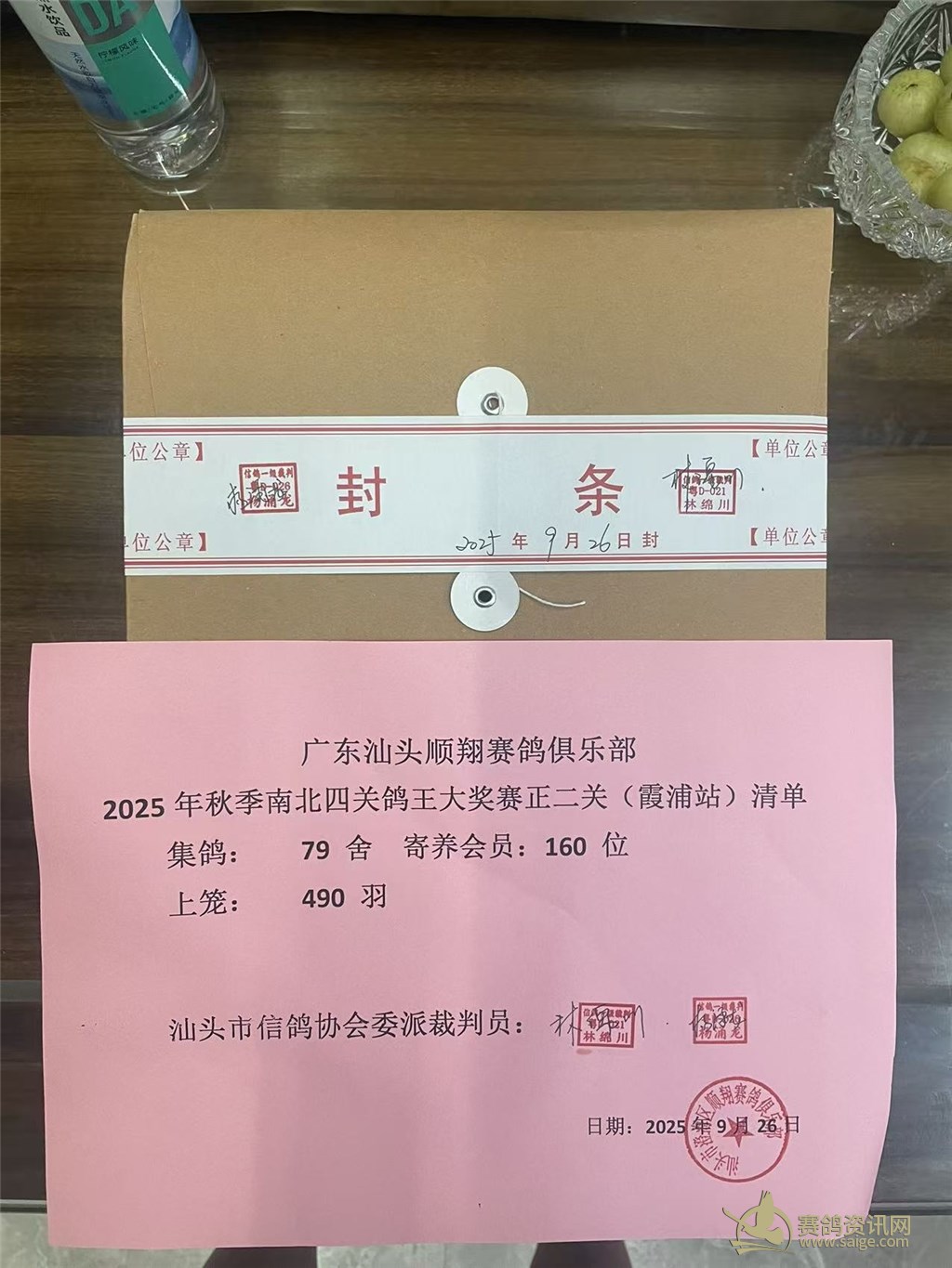 广东汕头市顺翔俱乐部2025年秋季南北四关鸽王赛正二关上笼明细