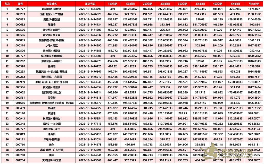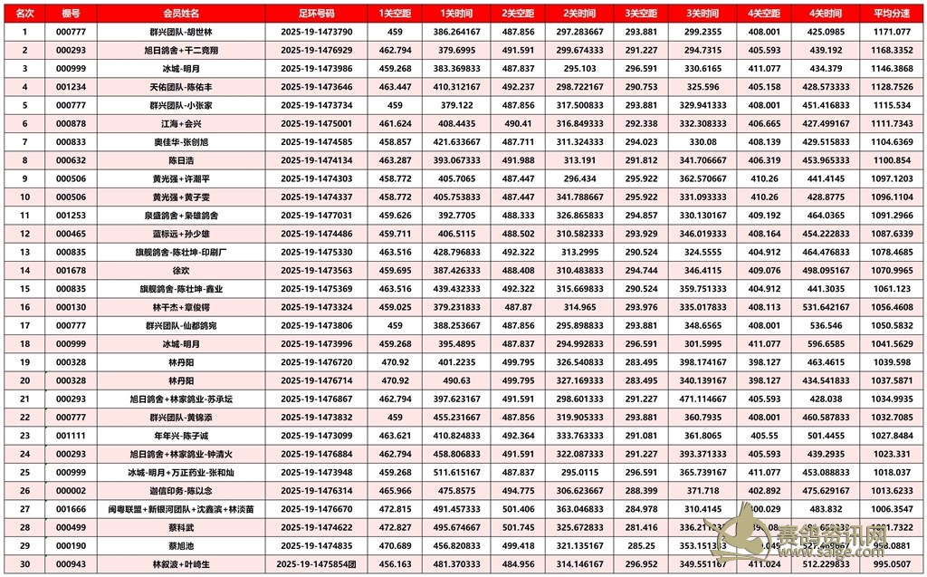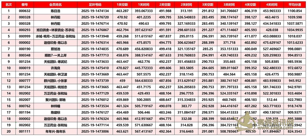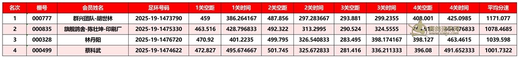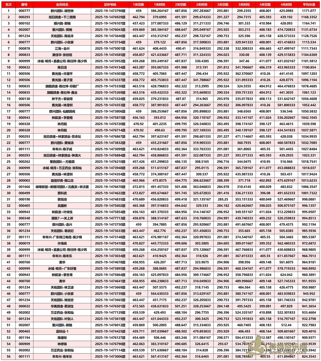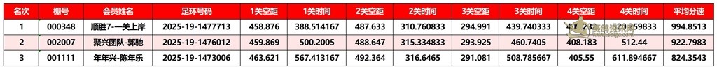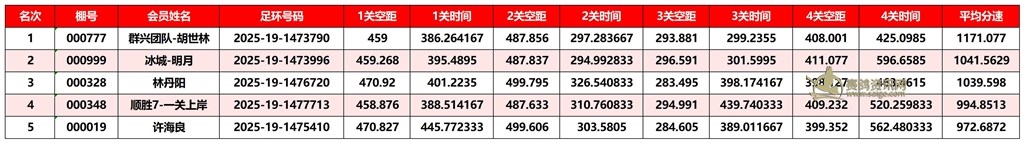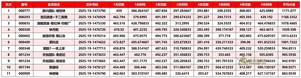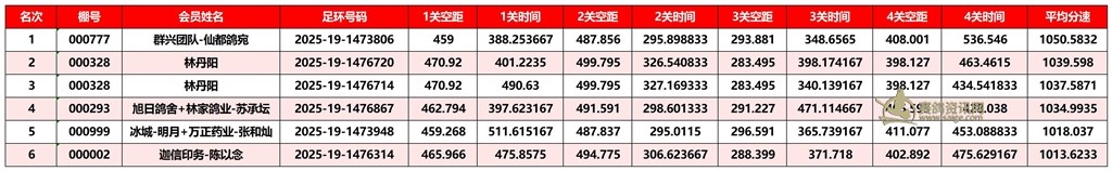 广东汕头市顺翔俱乐部2025年秋季南北四关鸽王赛正四关成绩