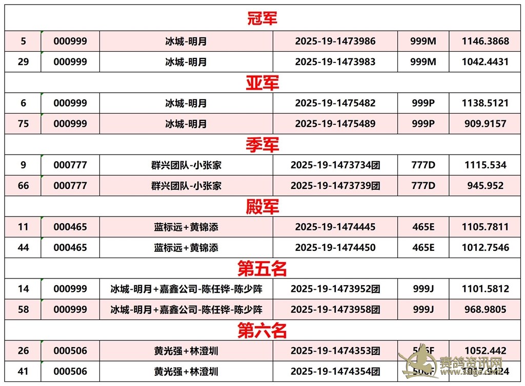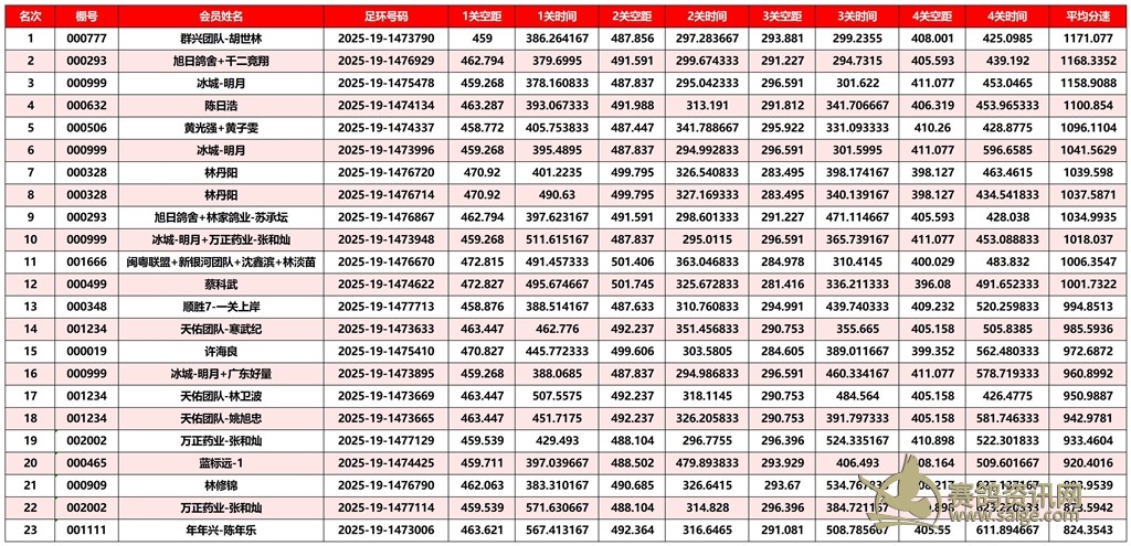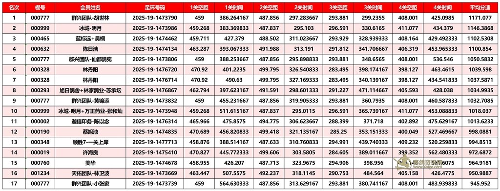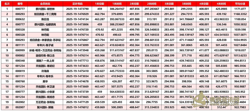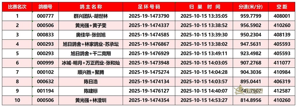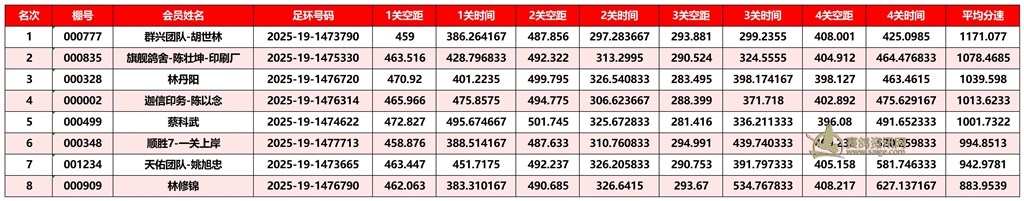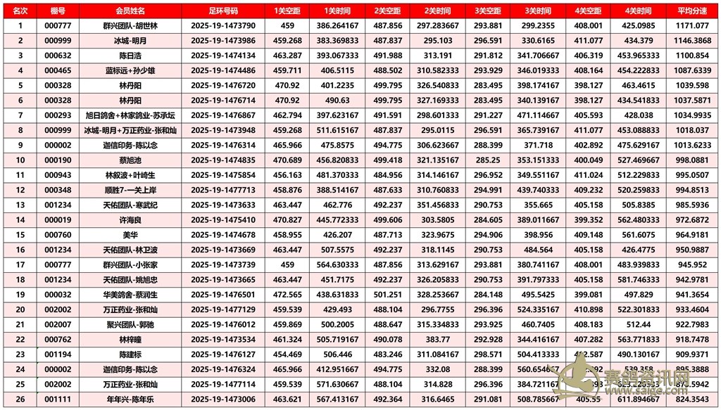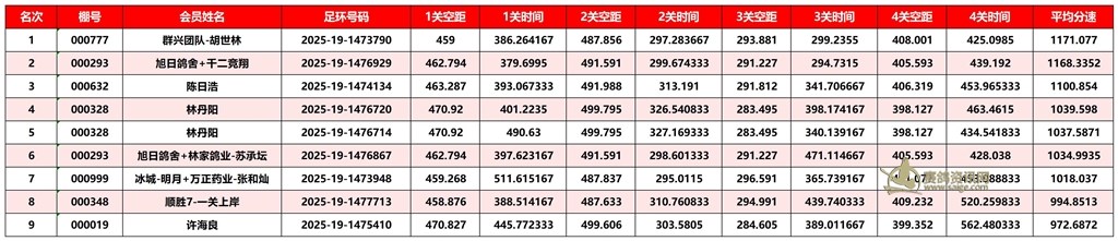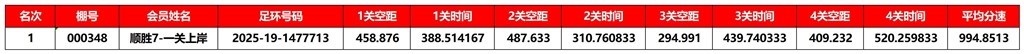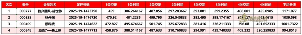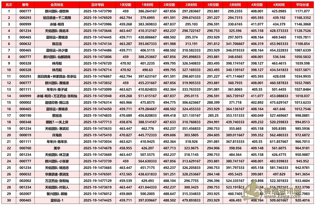 广东汕头市顺翔俱乐部2025年秋季南北四关鸽王赛正四关成绩
