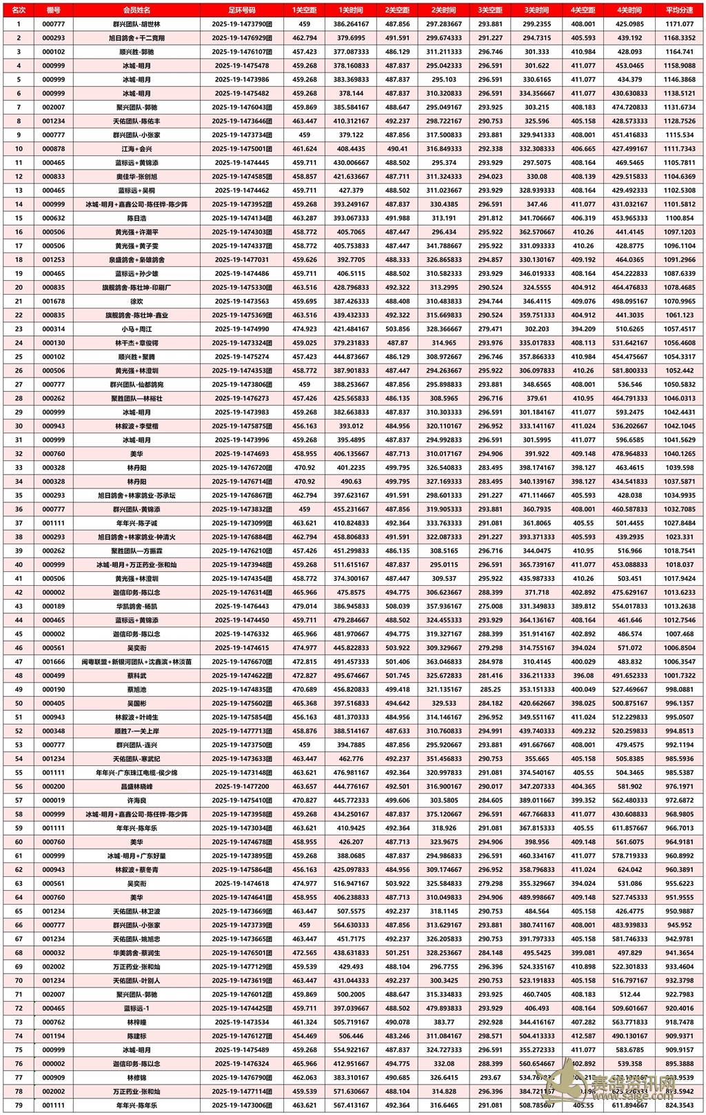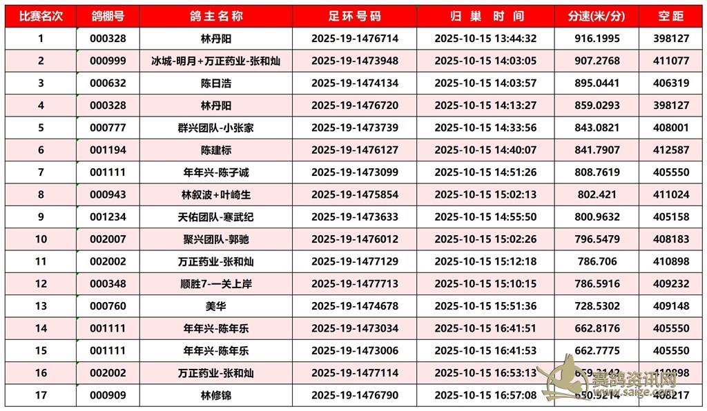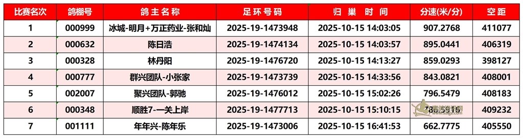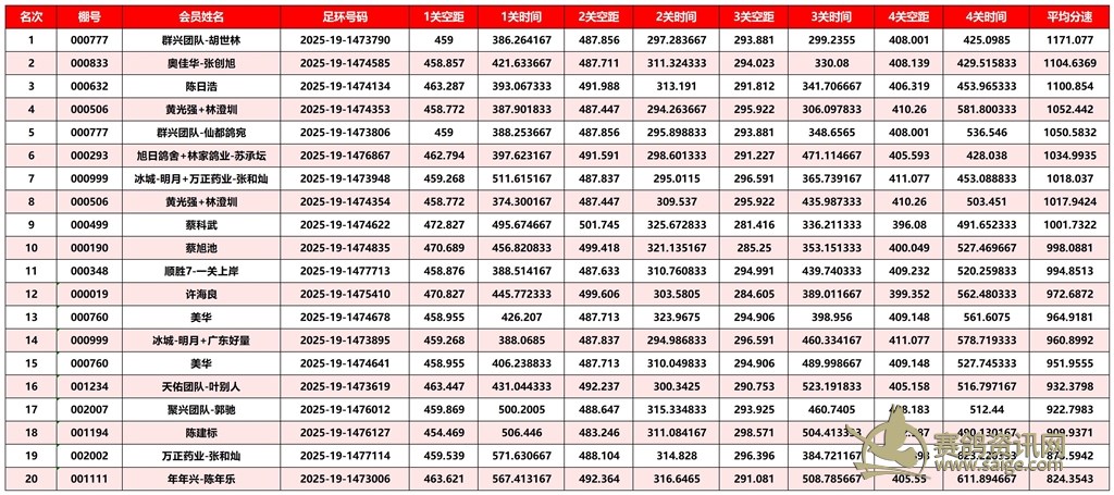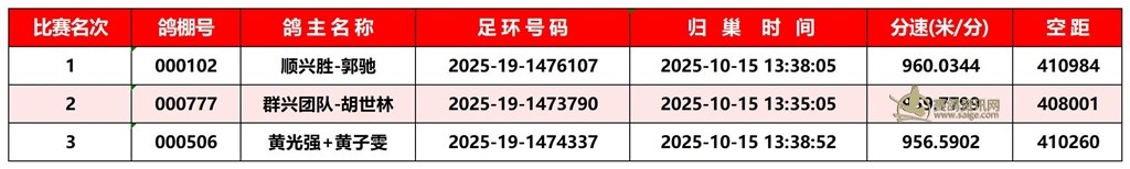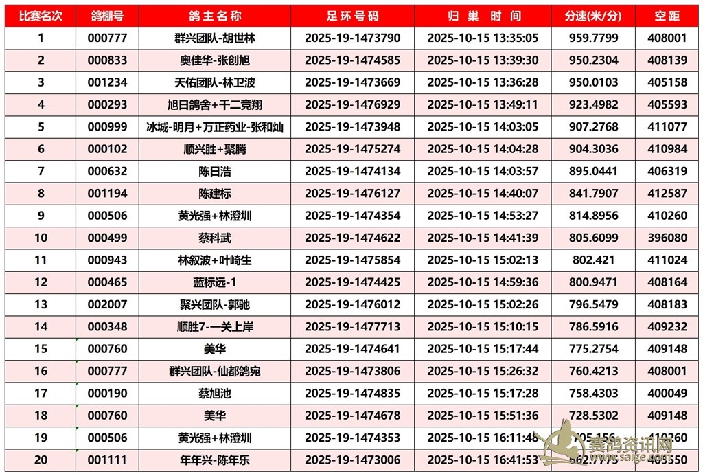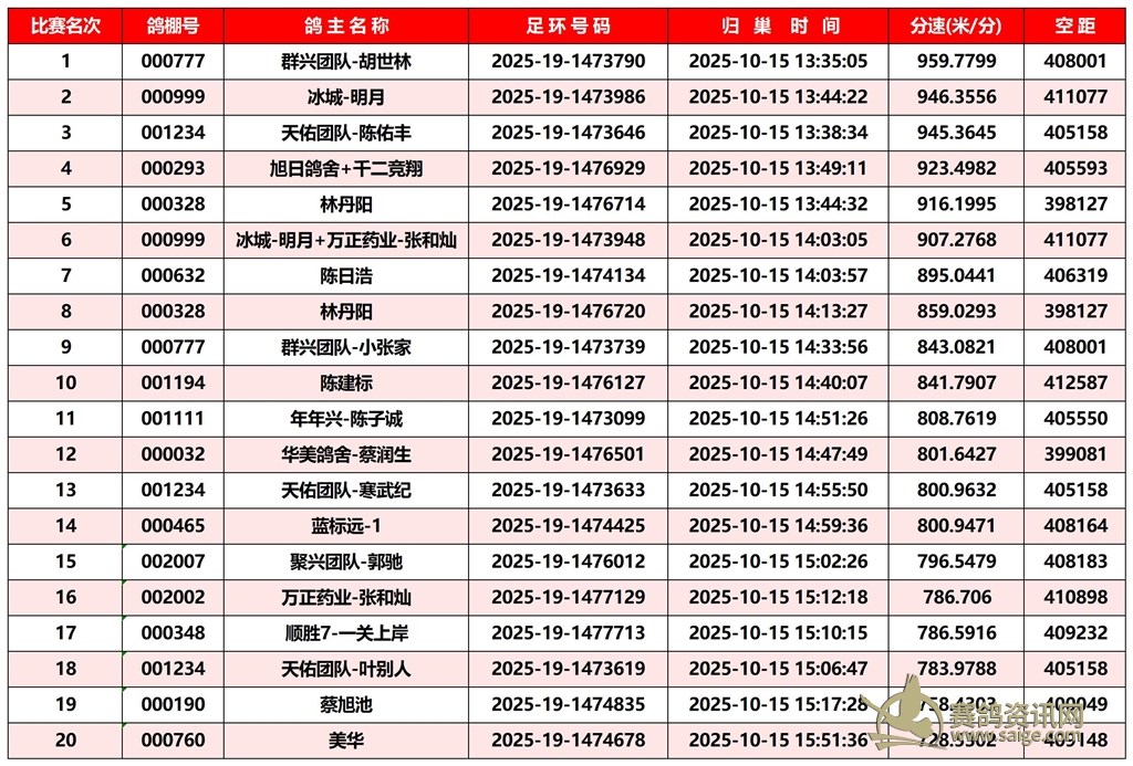 广东汕头市顺翔俱乐部2025年秋季南北四关鸽王赛正四关成绩