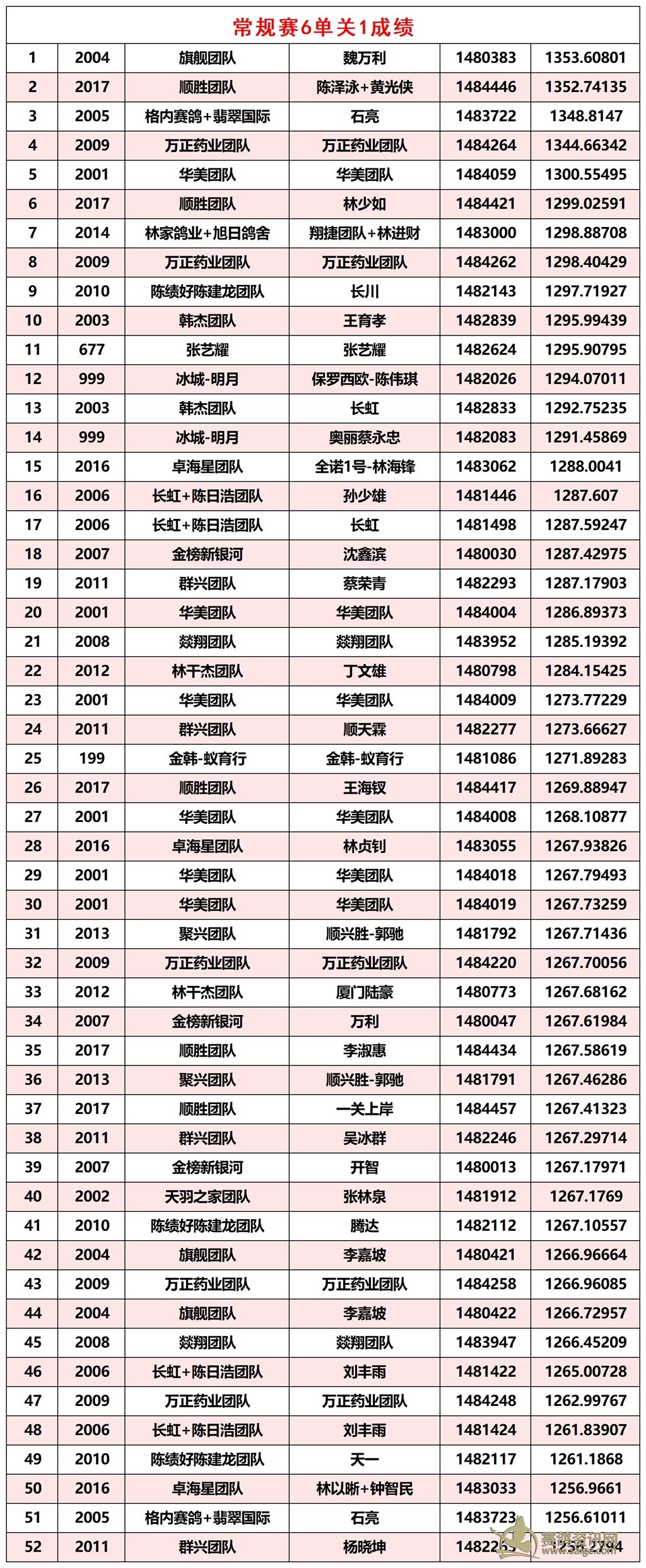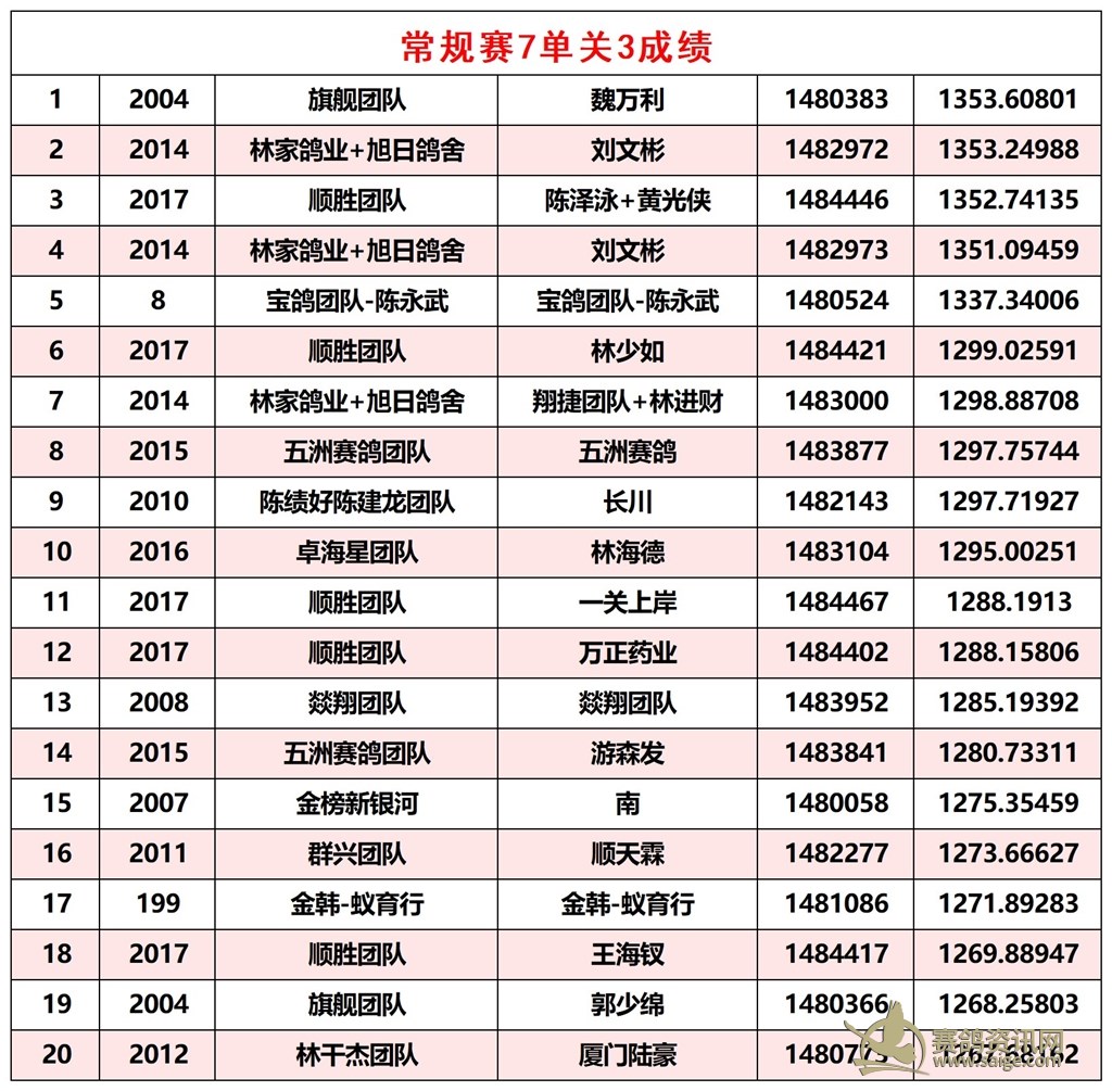 广东汕头市顺翔俱乐部2026年春季西线五关鸽王赛正一关成绩