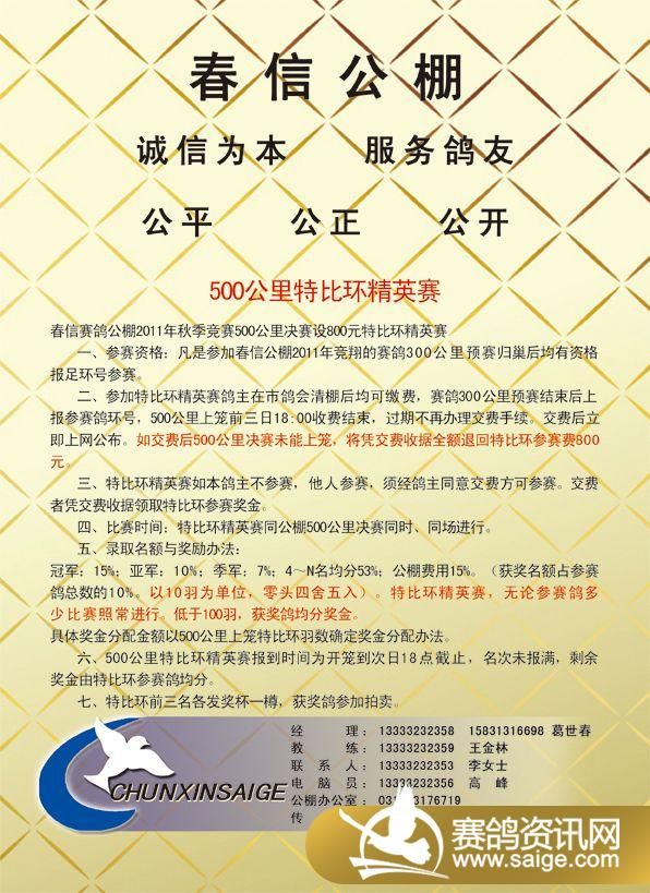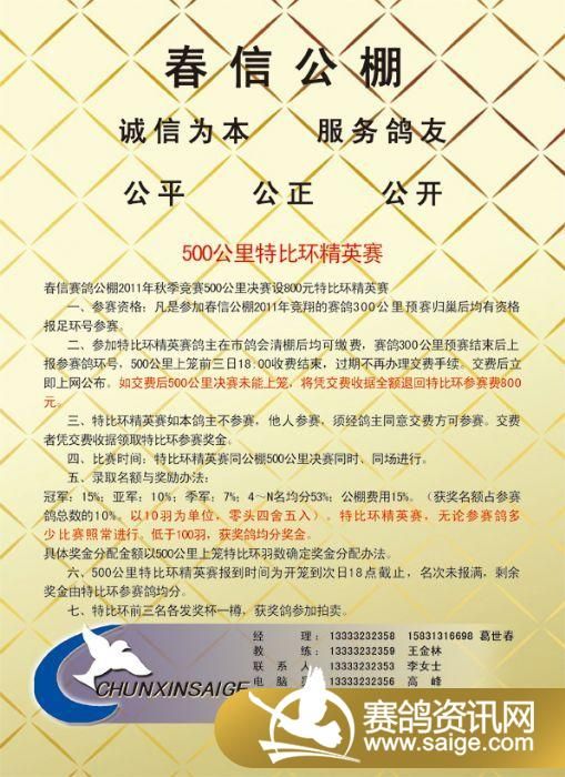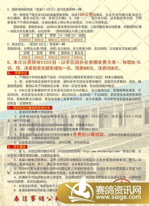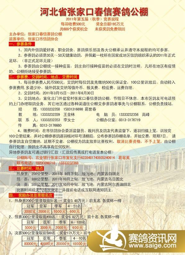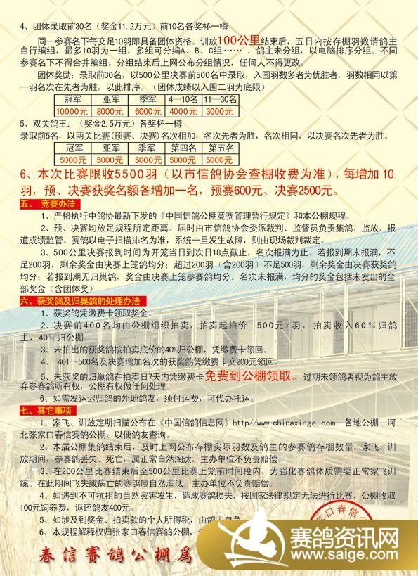张家口春信赛鸽公棚2011年秋季竞赛规程彩页