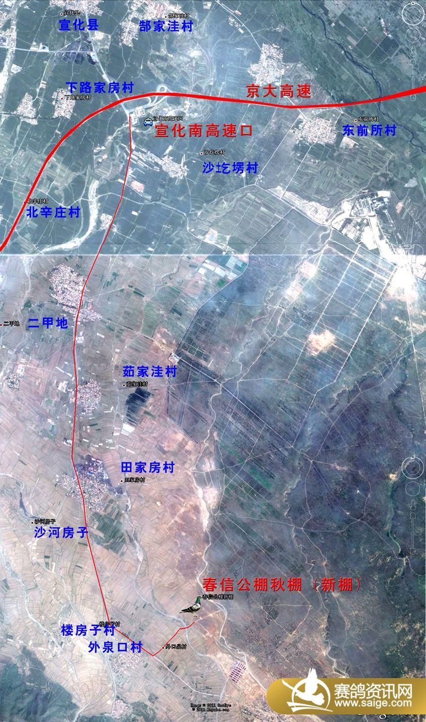 张家口春信赛鸽公棚新棚位于张家口市宣化县洋河南崞村镇外泉口村东北角,春信养殖基地院内,宣化南高速出口以南全程9.84公里、黄羊山以北、原炮兵靶场以西,交通便利。