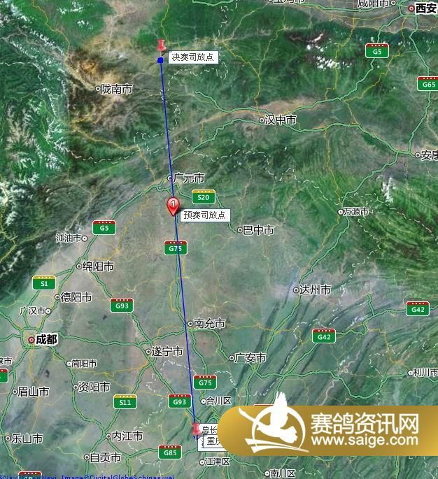 重庆宏艺翔国际赛鸽公棚预赛、决赛卫星地形图
