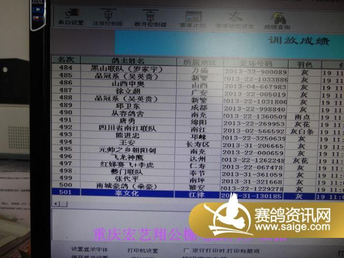 重庆宏艺翔国际赛鸽公棚第二次家飞扫描图集