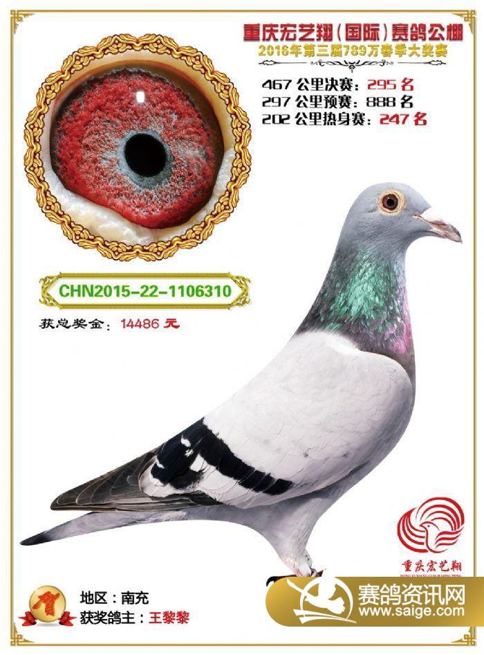 重庆宏艺翔赛鸽公棚第三届决赛获奖鸽欣赏(286-300名)