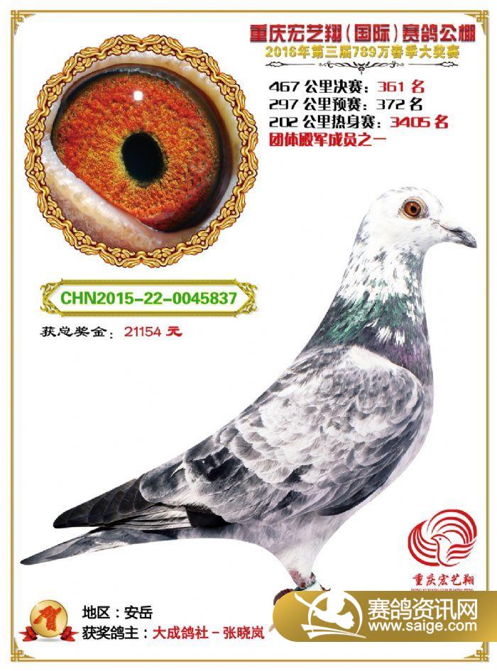 重庆宏艺翔赛鸽公棚第三届决赛获奖鸽欣赏(301-315名)