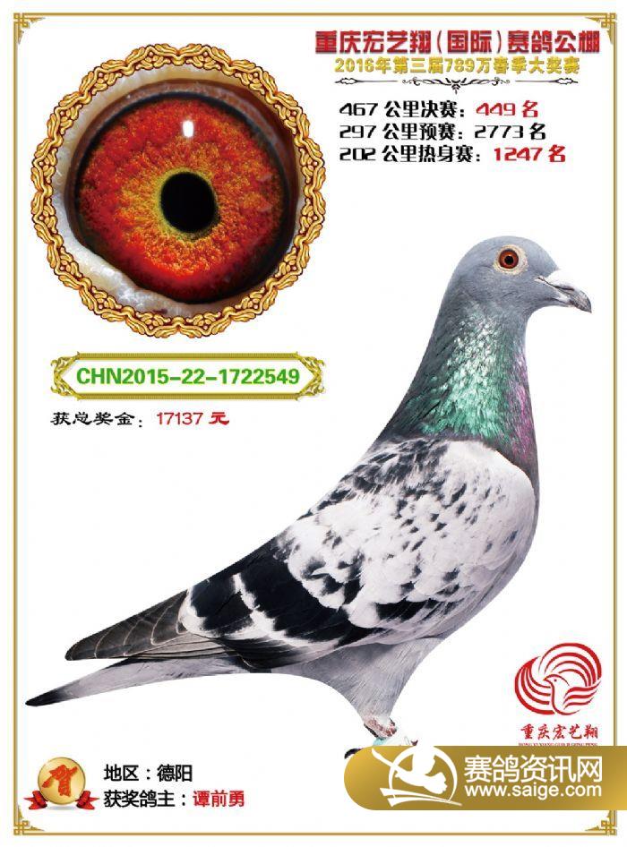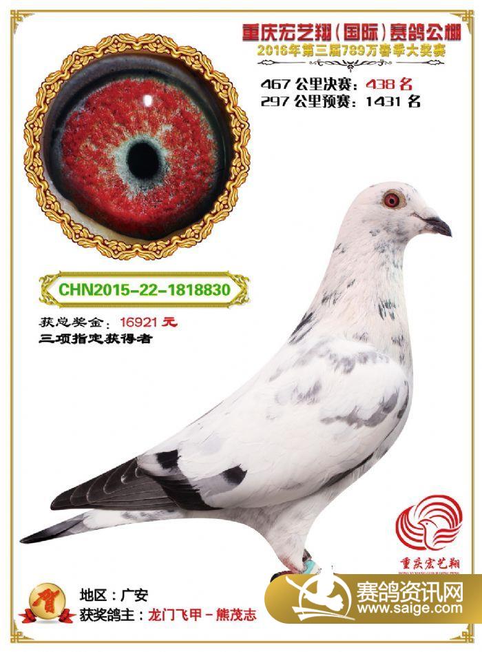 重庆宏艺翔赛鸽公棚第三届决赛获奖鸽欣赏(436-450名)