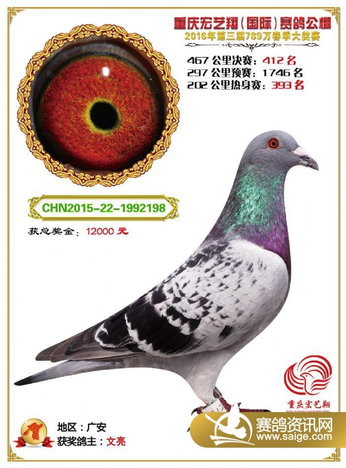 重庆宏艺翔赛鸽公棚第三届决赛获奖鸽欣赏(391-405名)