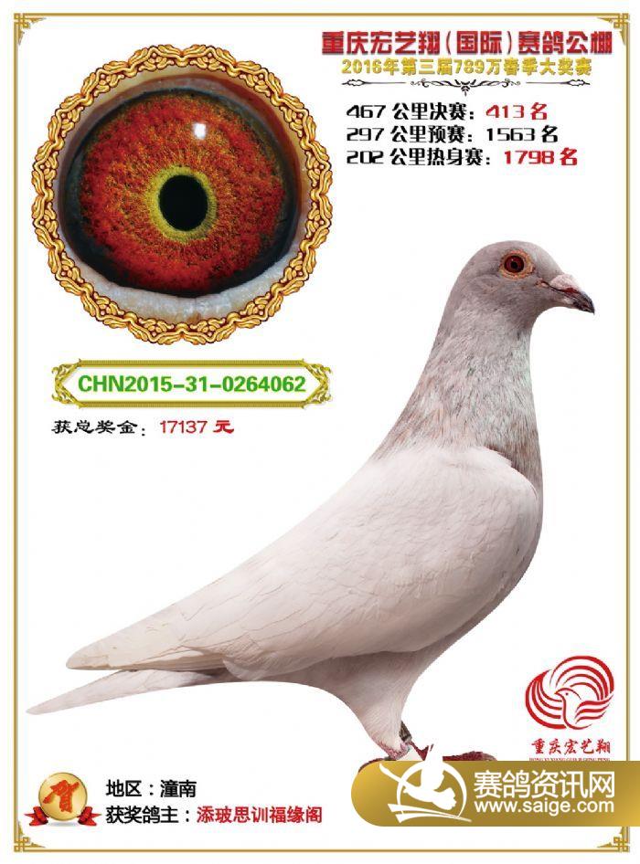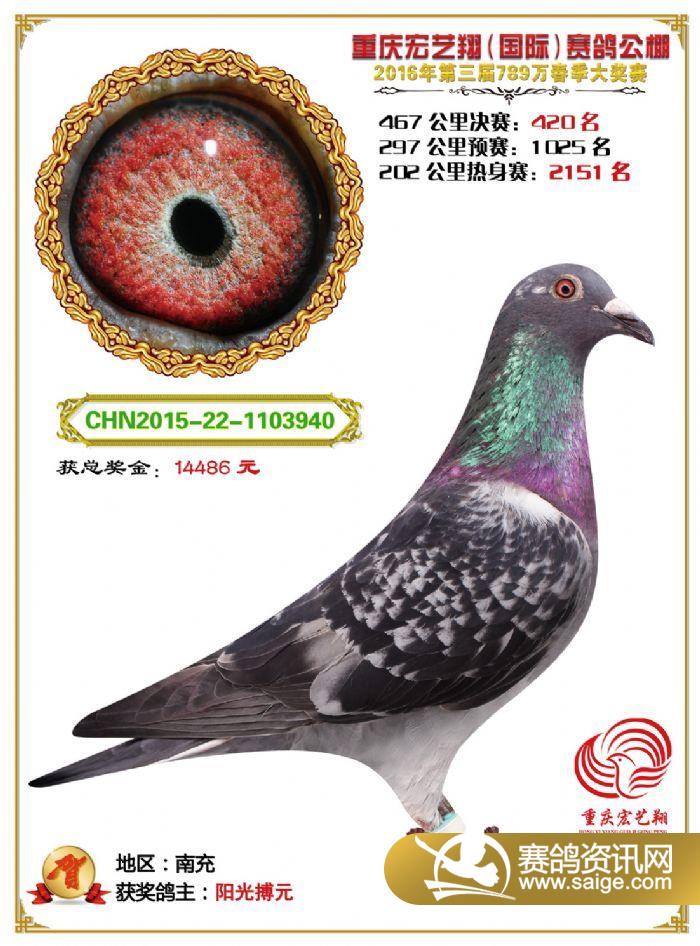 重庆宏艺翔赛鸽公棚第三届决赛获奖鸽欣赏(406-420名)