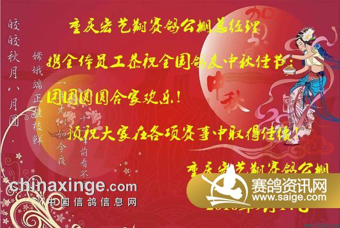 重庆宏艺翔赛鸽公棚中秋祝福!