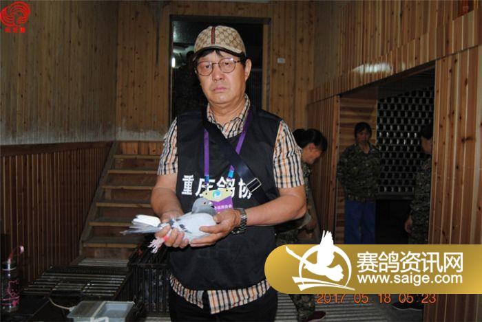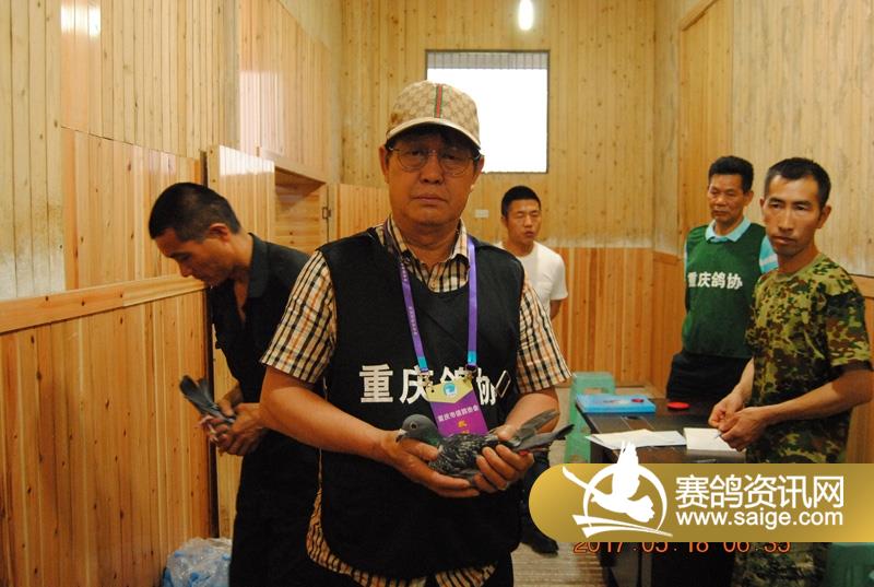 重庆市信鸽协会陈主席与裁判长李老师现场监督