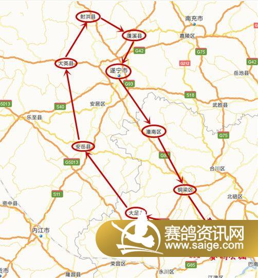 重庆宏艺翔赛鸽公棚7月17日接鸽路线图