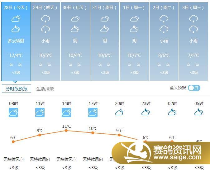 尊敬的会员鸽友,为了选择适合的天气对爱鸽进行训养,让鸽友们能随时掌握宏艺翔天气情况,重庆宏艺翔公棚特提供未来一周的天气预报供鸽友参考(12月28日及未来一周天气预报)。