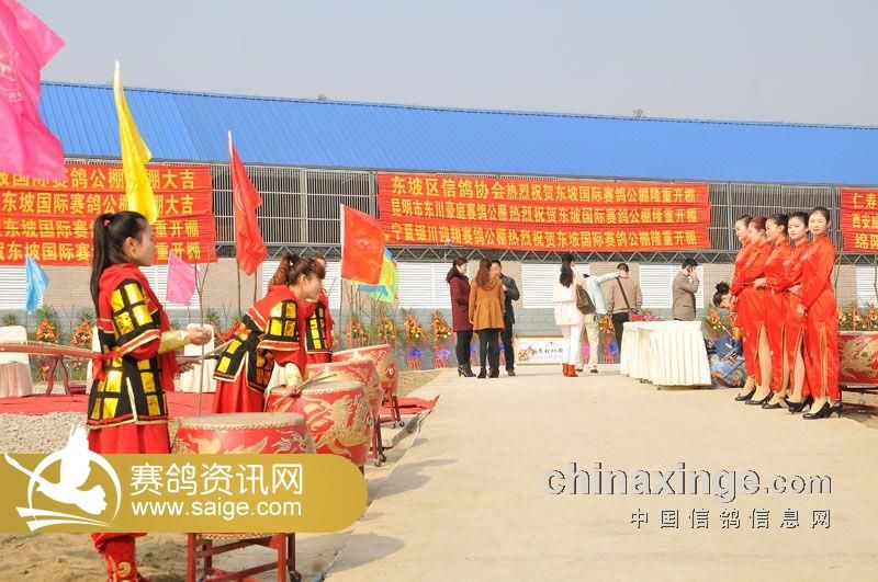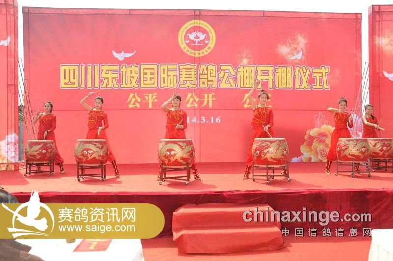 上午11点半在现场嘉宾的阵阵掌声中,开业庆典正式开始,四川东坡(国际)赛鸽公棚特别邀请了眉山锣鼓表演队为庆典现场擂鼓助威,还有美女四人组中国古典乐器表演,庆典节目高潮是赵本山二人转表演演员,为到场嘉宾带来欢笑,现场温馨而热闹。